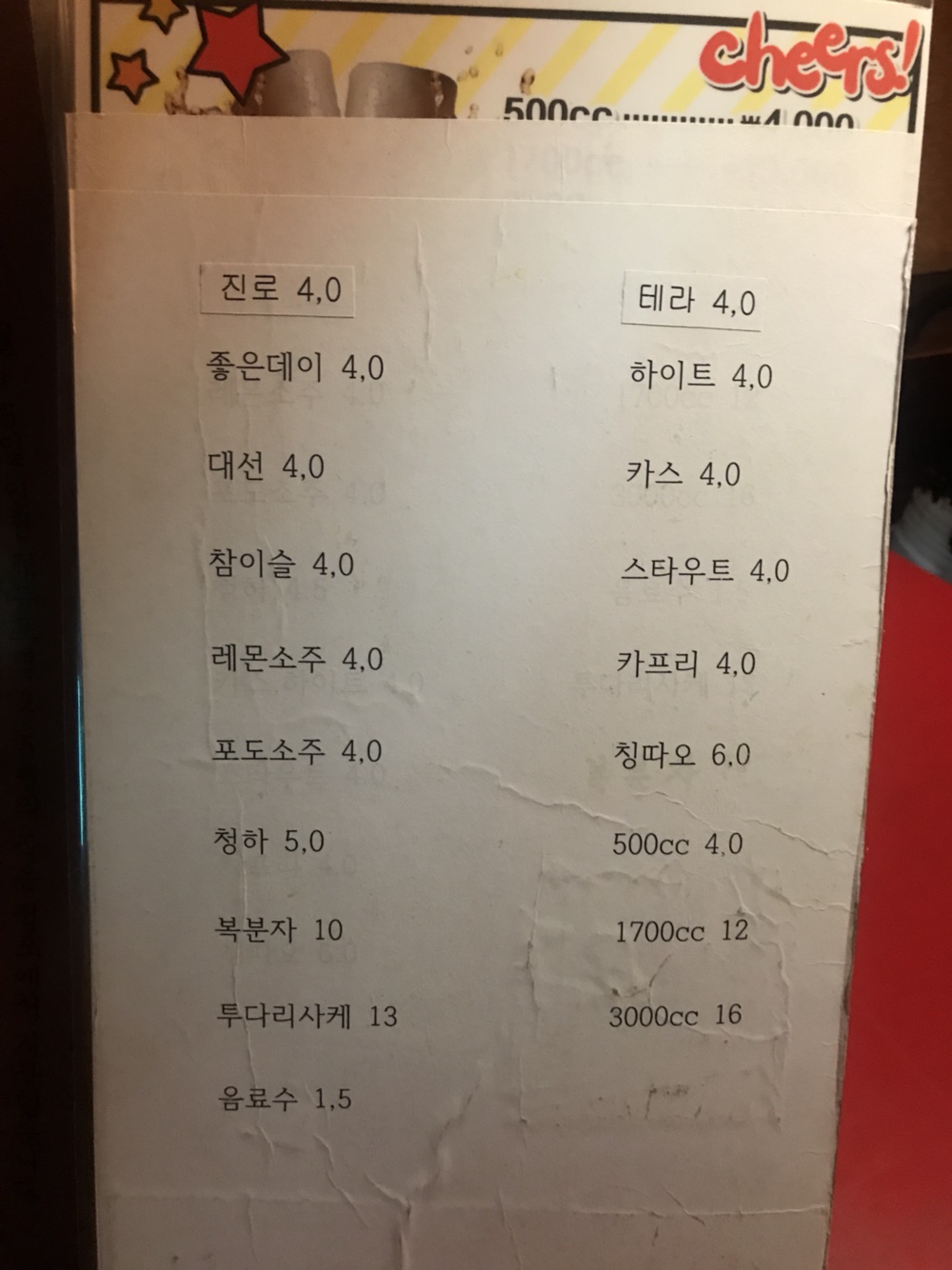 어맛 시켜야 해!!!라는 표정의 메뉴판입니다.